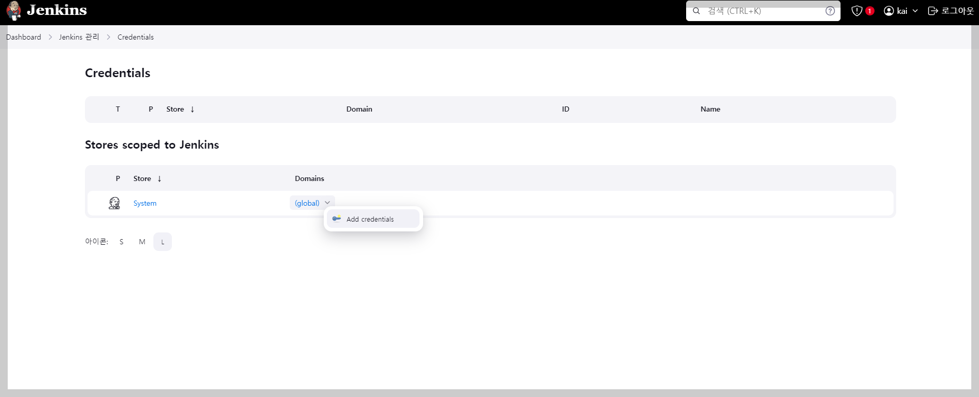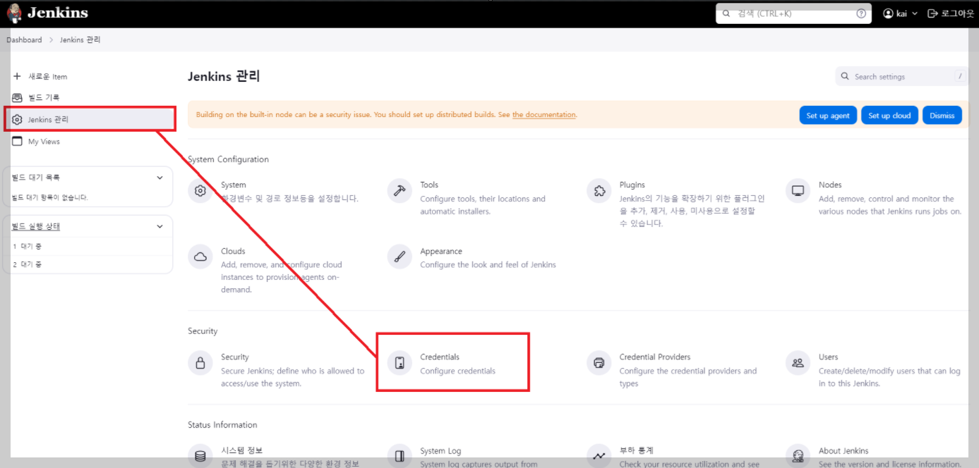 Kenkins 관리 > Credentials 클릭!!