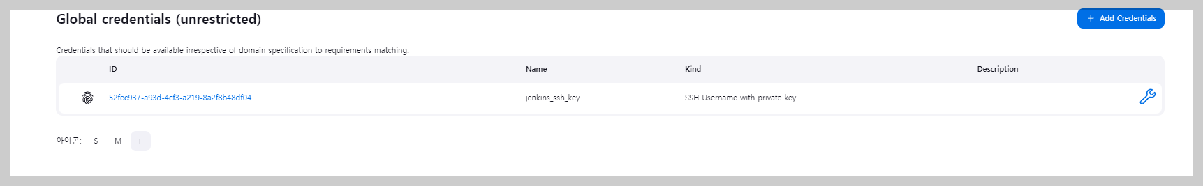 (global) 위치에 마우스를 올리고 Add credentials 버튼 클릭!!