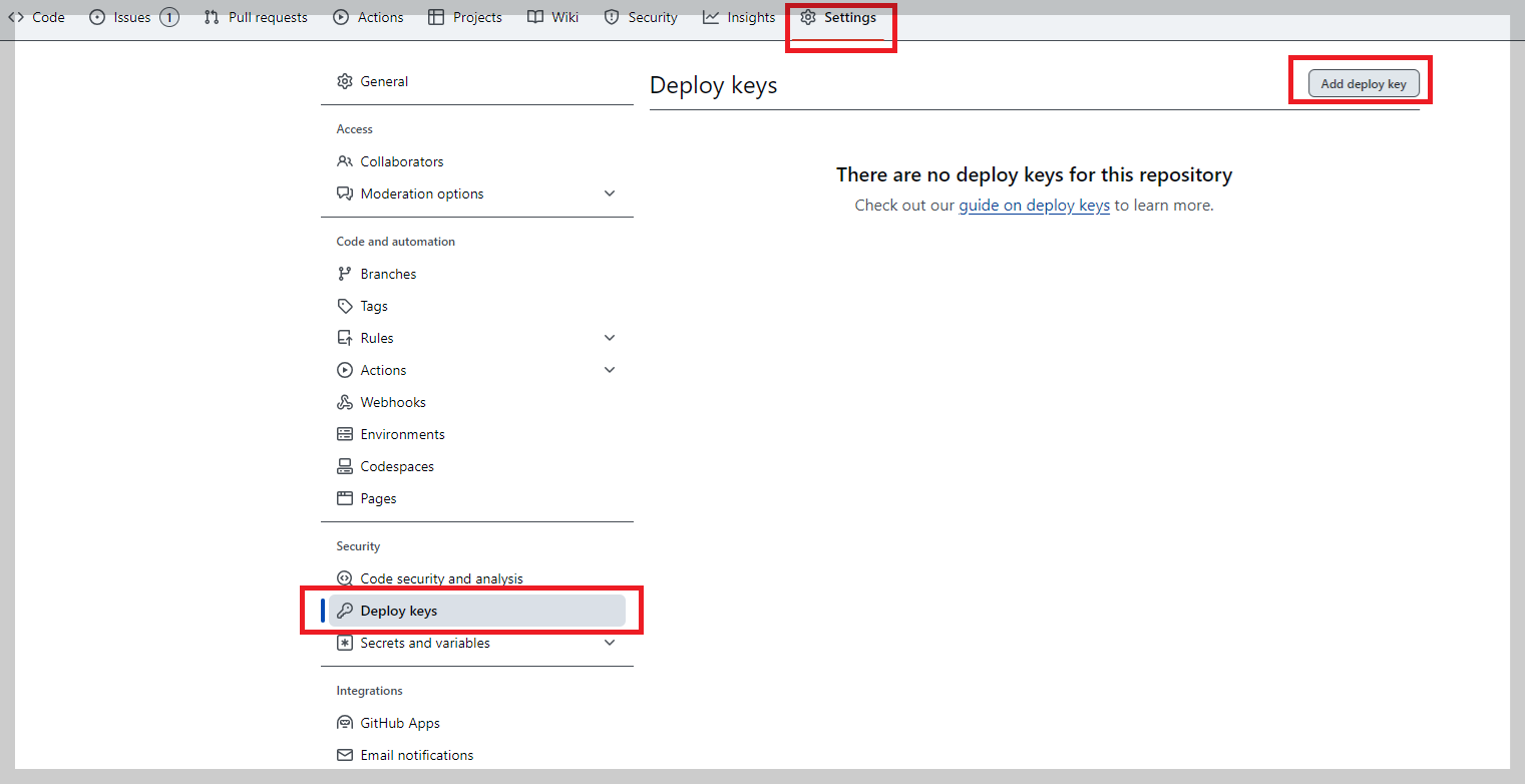 이후 왼쪽 메뉴에서 Deploy keys > 우측 상단 Add deploy key 클릭!!